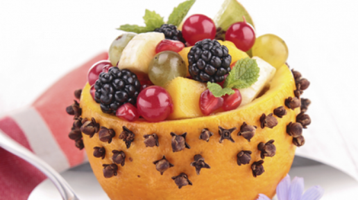 Фруктовый салат в апельсиновой корзинке
