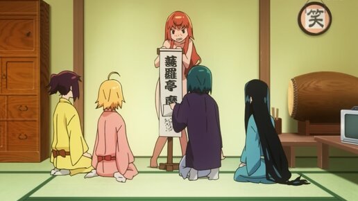 Что можно сказать в качестве вступления? Неловких и комедийных ситуаций в аниме, да и просто кино стало так много, что иногда у меня возникает ощущение, будто я ими пересытился. Я всё больше обращаю внимания на «разговорные комедии» и ищу чего-то необычного, наверно именно поэтому я остался в восторге от аниме, о котором сегодня пойдёт речь. Ибо так уж вышло, оно умудрилось совместить в себе всё то, чего я искал. С удовольствием представляю вам довольно странное аниме «В ракуго только девушки» (joshiraku)...