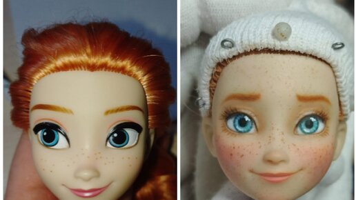 Всем привет! Меня зовут Александра, я делаю ООАК на куклах Монстер Хай, Эвер Афтер Хай и Барби. Некоторое время назад приехала ко мне голова куклы на перерисовки. Это принцесса Анна из мультфильма Холодное сердце - любимая кукла моей подруги Кати. Куколка у Кати давно, она даже пару раз ее перерисовывала. На лице остались пигменты от прежней росписи. Базирон с этими пятнами почти не справился - ушли только пятна от бровей. Вот такой Анна была до перерисовки. И вот такой примерно мне нужно было её сделать...
