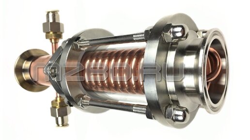 Холодильник Димрота (Картинка из Яндекса mzbd.Ru) Что такое холодильник Димрота Холодильник Димрота - модульный элемент дистиллятора. Используется в качестве обратного холодильника. Подключается к системе кламповым соединением нужного размера...