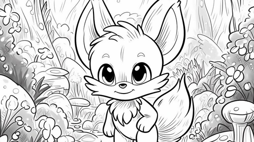 Создано на основе запроса: Adorable animal monkey cartoon fox in a magical forest, Pixar style, black and white coloring illustration. --- Автоперевод: Очаровательная мультфильма -мультфильм животных в волшебном лесу, стиль пиксара, черно -белая раскраска...