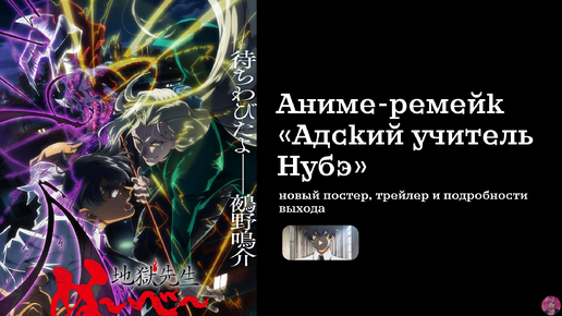 Твоя подписка и лайк — это огромная поддержка для меня! Я ценю каждого из вас и с радостью буду радовать новыми подборками и обзорами. Присоединяйся к нашему аниме-сообществу!🌸 Поклонников классической манги ждет приятная новость: опубликованы свежий постер и трейлер аниме-ремейка «Jigoku Sensei Nube» («Адский учитель Нубэ»). За адаптацию отвечает студия STUDIO KAI, и проект обещает подарить зрителям как ностальгию, так и новые эмоции. Производство аниме разделено на две части: Сюжет рассказывает о Нуэно Мэйсукэ, которого все зовут Нубэ...