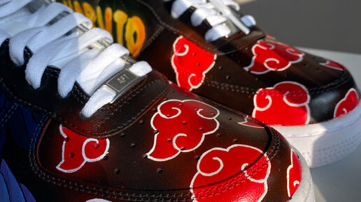 Всем привет! Сегодня хочу показать вам кастом на Air Force 1 на мое любимое аниме "Наруто". Почему форсы? Да потому что это лучшая и удобная обувь всех времен. Почему Наруто? Я просто лежал в своей кровати и думал, что же такого сделать, и я вспомнил одну историю с начальных классов, как моя бабушка купила мне диск с первыми сериями наруто, я смотрел его взахлеб. Тогда на меня нахлынула ностальгия и после этого я захотел нарисовать это аниме. На носах я решил изобразить символ Акацуки, и потом решил нарисовать двух основных персонажей Наруто и Саске...