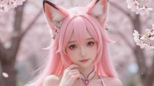 ! 🌸🦊 Разберём, как создать аниме-фэнтези портрет с идеальной детализацией материалов и атмосферного освещения, а затем оживим его в t.me/AAGVideoBot 📝 Оптимизированный промт: A beautiful anime-style fox girl with long, flowing pink hair and large, expressive eyes, sitting gracefully in a cherry blossom forest. She has delicate pink fox ears adorned with small flowers and a fluffy, voluminous tail that cascades behind her, blending with the soft pink hues of the scene. Her outfit is a revealing,...