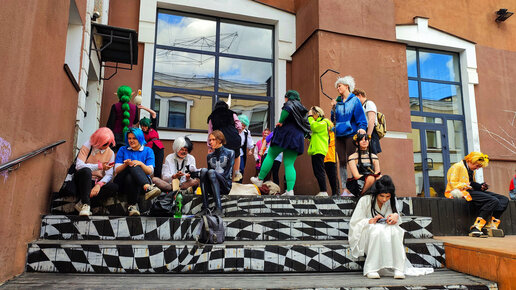 Выходишь так из вагона метро, отрываешься от смартфона, а перед тобой антропоморфное животное. Или просто человек с хвостом и звериными ушами. Было ощущение, что случайно перешагнул невидимую черту и произошло искривление пространства :) Скопление аниме-персонажей на Бауманской, собственно с этого началось. По ссылке видео, простите вертикальное. Непонятно, откуда их СТОЛЬКО? Проследили миграцию персонажей и пришли в Басманный двор. А там аниме-тусовка и КИЦА арт-маркет. Общение, танцы, конкурсы, вот это вот все...
