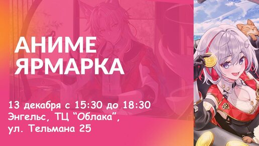 Аниме-ярмарка КимиТо в Энгельсе — 13 декабря в 15:30! Что вас ждет? 💖💖💖 Огромная мульти-фандомная ярмарка — закупайся аниме-стаффом, атрибутикой по играм, фильмам и сериалам! Азиатские сладости — попробуй что-то новенькое и вкусное! K-POP & J-POP товары — для истинных фанатов корейской и японской музыки! Активности и конкурсы — потому что ярмарки от KimiTo — это не только...
