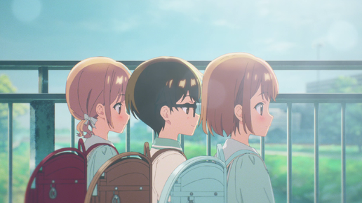 Вот это я тоже ждал после изучения части первоисточника и манга-адаптации. Пожалуй, самая гиковская романтика из тех, что я встречал, насквозь испещрённая отсылками к обширному списку литературы, кино и так далее. Похоже, указанная среди жанров "комедия" относится как раз к этому аспекту и связанных с ним несколько заумных диалогам, ведь больше ничего комедийного я не обнаружил. Завязка одновременно простая и сложная: Сиросаки Дзюн знает близняшек Дзингудзи Руми и Наори с юных лет. Их семьи живут в соседних домах и дружат с тех пор, как последние переехали в это место...