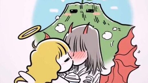 Милые комиксы о любви ангелочка и демона: ледяной поцелуй