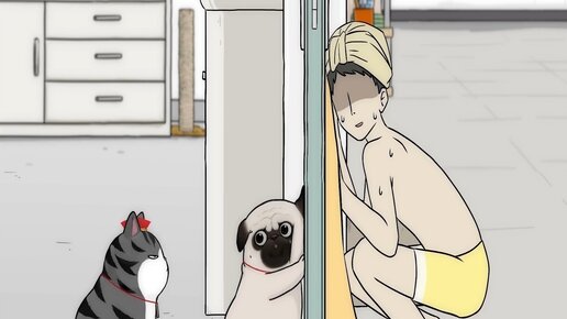 Смешное и очень дикое аниме о буднях художника, который живет с глуповатой собакой и высокомерным котом