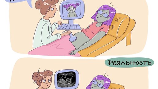 Комиксы про беременность и роды "ожидание / реальность"