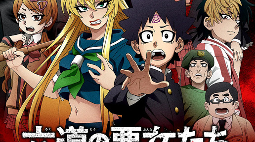 Rokudou no Onna-tachi 🎬 Год выхода: 2023 🎭 Жанры: Комедия, романтика. ⸻ 🌀 Сюжет Обесцвеченные или окрашенные в яркий цвет волосы, броский макияж, ультракороткая или максимально длинная юбка, агрессия в каждом взгляде и движении: хулиганки поражают прохожих, воображение, а при метком попадании — носы, почки и в редких случаях — сердца. У старшеклассника Тосукэ Рокудо они поражают миндалину лимбической системы, отвечающую за формирование страха. Его первая реакция при встрече с хулиганкой — развернуться и бежать, сверкая пятками...