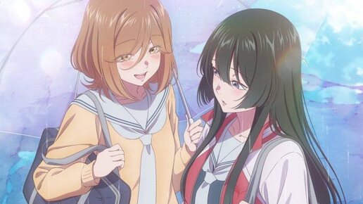 Постер аниме-адаптации сёдзё-ай манги «Луна в дождливую ночь