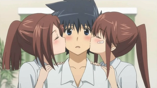 1 место Поцелуй сестёр / Kiss x Sis (TV) Для Кэйты пришла пора поступать в старшую школу. Его родители выбирают школу Гакусю, которую уже посещают старшие сёстры Кэйты. Только вот проблема — Ако и Рико без ума от младшего брата и относятся к нему совсем не по-сестрински. Они очень рады, что Кэйта поступает в их школу, и сделают всё, чтобы он сдал экзамены. А уж под «всё» у весёлых сестричек понимается довольно многое. В результате парню придётся немало постараться, чтобы остаться просто братом неугомонным близняшкам...