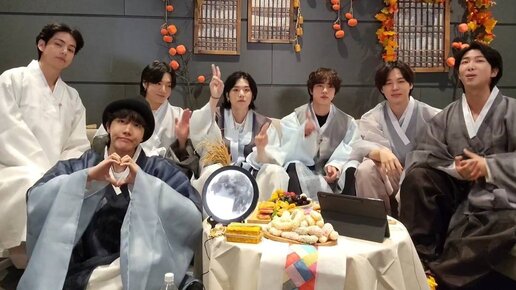 Семеро в ханбоках. Прямой эфир BTS по случаю Чусока. Репортаж