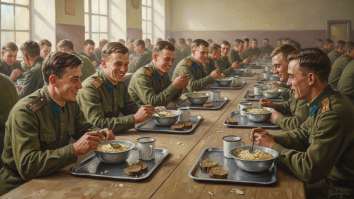 Говорят, армия делает из мальчиков мужчин. Но, если спросить тех, кто прошёл советские казармы, многие ответят иначе: армия делает из мужчин людей, которые умеют есть всё. Буквально всё. Я слушала эти истории от отца, от соседа-ветерана, от дядьки, который до сих пор называет перловку "шрапнелью" — и смеётся. Смеётся, потому что иначе не расскажешь. Советская армейская кухня — это отдельная глава истории страны. Не в учебниках, конечно. Там про неё ни слова. Но в памяти миллионов мужчин она живёт очень отчётливо...