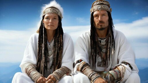 Пара шаманов, облачённые в белоснежные одежды, сидели на вершине горы, наблюдая за звёздами. Их длинные косы были украшены бусинами и камнями, а на руках блестели браслеты из серебра и меди. Они были не просто шаманами, но и мастерами вязания. Каждый из них держал в руках спицы и пряжу, которую они пряли из небесных звёзд. Звёздочки, словно бусины, падали на землю, образуя звёздный водопад. Шаманы легко и радостно вязали, создавая узоры из звёзд. Они пели песни, которые были наполнены силой и мудростью древних шаманских традиций...