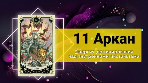 Это аркан внутренней силы, призывающий к мудрости, терпению и сознательному управлению своими действиями. Его энергетика говорит нам о том, что истинная сила проявляется в способности преодолевать трудности смиренно и без насилия. Ключевые слова по аркану "Сила": внутренняя сила, контроль, мудрость, терпение, доминирование над инстинктами, смирение, сознательное управление, мирное преодоление, сила внутри. 11 Аркан: символика и значение карты из Таро Общее описание карты: Карта "Сила" в Таро показывает женщину, которая дружелюбно управляет львом...