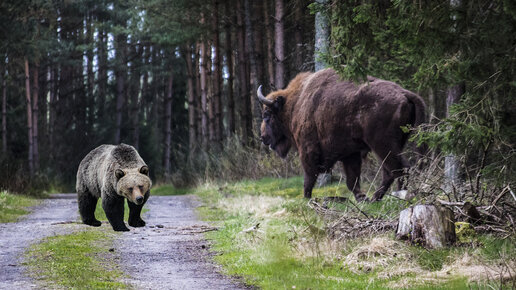 Бизон против гризли: схватка гигантов. У кого больше шансов на победу?