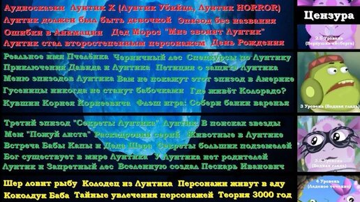 Хай, демос! Сегодня мы с вами будем разбирать айсберг по "Лунтику", который я отыскал на просторах Интернета. Не буду тянуть, полетели! Я ни в коем случае не присваиваю себе авторства над данным айсбергом, я всего лишь хочу разобраться во всех его ступенях вместе с вами. К слову, мой канал указан в конечном титре, а это значит, что объяснение некоторых пунктов вы получите из первых уст. Что ж, летим! Уровень l Поднебесье История проекта Если вкратце, то проект закрутился благодаря задумке Александра Боярского о пришельце, упавшем с Луны...