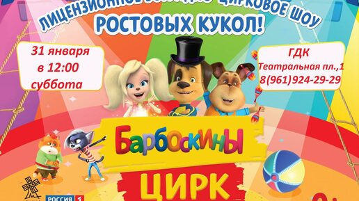 🎉 31 января в 12:00 «Барбоскины Цирк» Билеты можно приобрести в кассе по адресу: ул. Свердлова, 73/1, а также онлайн Цена: от 700₽ Игровое развлекательное шоу ростовых кукол. Цирковые номера традиционных жанров, трехметровые пневмороботы, лазерная анимация,...