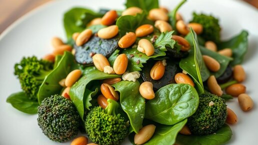 Рецепт салата из шпината, брокколи и кедровых орехов! Этот салат не только вкусный и полезный, но и очень яркий и привлекательный. Ингредиенты: Приготовление: Советы и хитрости: Вариации: Этот салат – прекрасное сочетание пользы и вкуса, и его легко адаптировать под свои предпочтения...