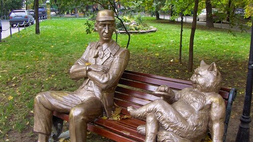 Коровьев и Кот-Бегемот В Москве, между метро "Новослободская" и Марьиной рощей, в дворике у дома №13 на улице Советской Армии присели на лавочке два литературных героя из романа Михаила Булгакова "Мастер и Маргарита" - Коровьев и кот Бегемот. Памятник был открыт в августе 2006 года. Простоквашино В городе Луховицы Московской области установлен памятник почтальону Печкину. Автор - Полина Горбунова. Бронзовый герой книги детского писателя Эдуарда Успенского установлен напротив здания почты. Двухметровый...