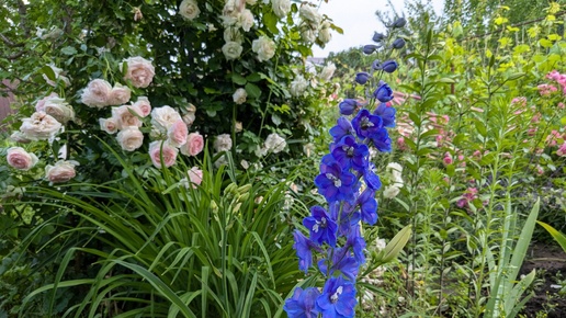 Розы и дельфиниумы: жду, когда дорастёт то одно, то другое