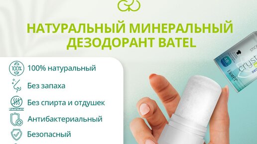 Коротко и понятно про минеральный дезодорант Batel ⭐️ Минеральный дезодорант Batel (алюмокалиевые квасцы или по-простому алунит) – это натуральный дезодорант в виде бесцветного солевого кристалла. Его принцип действия прост – квасцы обладают антибактериальным эффектом, то есть уничтожают причину неприятного запаха. ☝🏼 Минеральный дезодорант Batel не оставляет пятен и следов на одежде, и не имеет запаха, так как в нем нет дополнительных примесей и отдушек. Идеален для тех, кто не любит ароматные дезодоранты...
