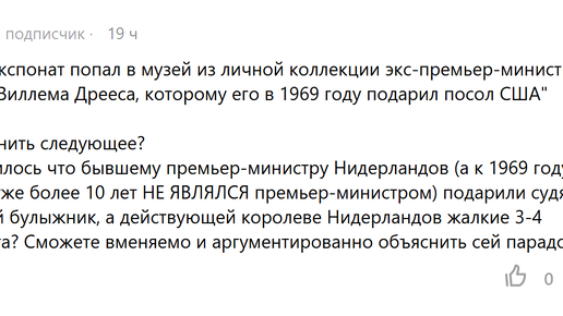 Поскольку от адресата этого вопроса внятного ответа можно ждать до тепловой смерти Вселенной, вынесу его на общее обсуждение. Вопрос с камнем подаренным послом бывшему премьеру рассматривался здесь: Ну а на самом деле вопрос должен звучать так: В рамках программ Nixon Goodwill Moon Rocks официальные «лунные сувениры» представляли собой микроскопические количества грунта (несколько крупиц, залитых в акрил), которые через послов США вручались действующим главам государств — в том числе королеве Нидерландов...