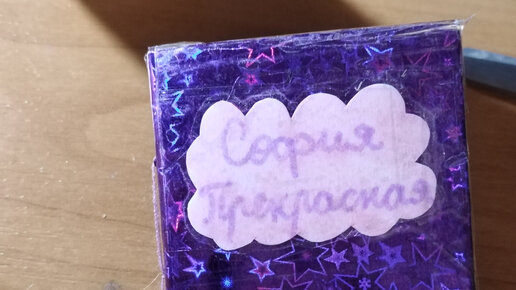 Я решила слелать блокнот по мультфильму "София Прекрасная", но можно сделать блокнотик на любую тему. Для начала возьмем плотный картон. Я беру от старых коробок. И согнем основу пополам, как книжку. Теперь обклеиваем яркой, блестящей бумагой. Цвет бумаги лучше выбрать под конкретную идею, у меня фиолетовый. Приклеим на внешнюю сторону, оставив уголки для загибания. Загибаем уголки, аккуратно подгибая и приклеиваем. Теперь наклеиваем цветной картон на внутреннюю сторону...