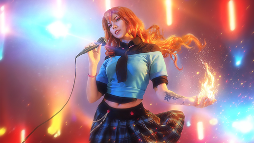 В мире волшебства и дружбы героиня Блум из «Клуба Винкс» всегда выделялась своей отвагой и пламенной энергией. Этот косплей передаёт её сущность — огонь, который горит внутри, готовый вспыхнуть, когда речь идёт о защите друзей и вере в себя. Искрящийся свет, уверенный взгляд и яркая сцена превращают кадр в настоящее волшебное выступление, где магия и музыка сливаются воедино. Фэндом: Клуб Винкс