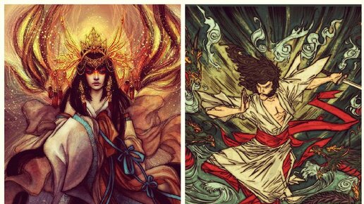 Аматэрасу- великая священная богиня, сияющая на небе. Прародительница японского императорского рода. Она так же как и её брат произошли от Идзанаги. Аматэрасу произошла от левого глаза, а её брат Сусаноо от носа. После того, как Идзанаги родил богов, он отдал Аматэрасу небо, а её брату Сусаноо море. Однако он не желал принять на себя правление и хотел удалиться в страну матери. За это разозлённый Идзанаги изгнал его. Перед изгнанием Сусаноо решил навестить сестру, которая посчитала, что брат хочет отнять её владения...