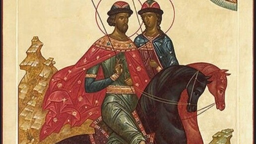 В Третьяковской галерее стоит замечательная икона, которая называется «Борис и Глеб на конях». На ней изображены два брат, два древнерусских князя верхом на словно закалдованных конях - черном и красном. Они абсолютно спокойны, и кажется, что они просто напросто вышли на небольшую прогулку со своими верными скакунами. В правом верхнем углу иконы виден Христос, который как бы благославляет путников на их дорогу. Но на самом деле братья едут далеко не на прогулку, и их судьба сложилась гораздо более трагично, чем кажется на первый взгляд...