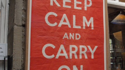 Keep calm and carry on - популярный в настоящее время слоган на просторах сети Интернет, который обрел великое множество вариаций. Но что же это означало с самого начала? История Данный плакат был выпущен в 1939 году в начале Второй Мировой войны в качестве агитационного - поэтому для него использовался яркий фон и броский, лаконичный шрифт. Помимо данного плаката (Который, кстати, переводится как "Сохраняйте спокойствие и продолжайте действовать"), были выпущены еще два - «Freedom Is In Peril. Defend It With All Your Might»(Свобода под угрозой...