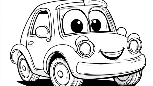 Создано на основе запроса: a cute cartoon car, line art coloring book for kids
