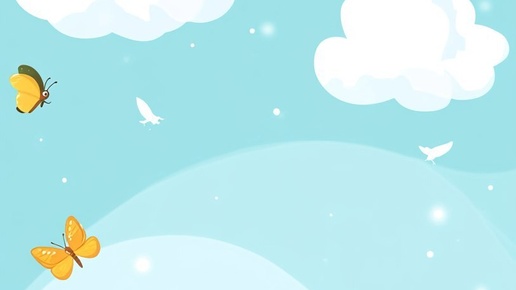 Создано на основе запроса: A cartoon picture with a clear sky and two clouds and a butterfly and a bird flying