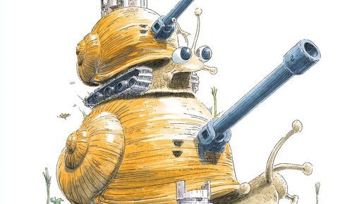 Создано на основе запроса: cartoon. 2 garden snails with tank treads. large artillery guns mounted to their shells. --- Автоперевод: мультфильм. Хорошо получилось? 🤔 https://dzen.ru/id/65c0c65c86e4f837c27b24d7...