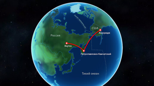 Пересечь её можно, воспользовавшись авиарейсом «Петропавловск-Камчатский — Анкоридж» авиакомпании «Якутия»...