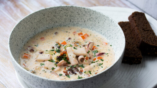 Сегодня я познакомлю вас с изысканным и полезным первым блюдом, которое легко приготовить в домашних условиях ;) Чаудер давно уже завоевал сердца жителей Северной Америки. Это наваристый, питательный, но в то же время очень нежный суп с морскими деликатесами. Ловите рецепт Чаудера в моем исполнении :) Ингредиенты: Картофель — 2 шт. Морковь - 1 шт. Мука — 1 ст.л. Бекон — 100 г Масло топленое — 1 ст.л. Кости, хвост и голова лосося — для варки бульона. Лук репчатый — 1 шт. Сливки — 100 мл Морской коктейль Risma— 250 г Тимьян — 1 веточка, петрушка по вкусу...