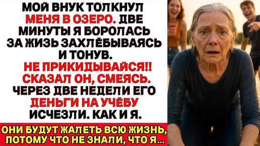 Мой внук толкнул меня в озеро. Две минуты я боролась за жизнь, захлебываясь и тонув. "Не прикидывайся!" — крикнул он, смеясь. Через две недели его деньги на учебу исчезли, как и я. Они не знали, кто на самом деле держал их жизнь на плаву, пока не стало слишком поздно. Я никогда бы не подумала, что обычный семейный шашлык — такая простая, казалось бы, добрая домашняя традиция — обернется тем, что я буду захлебываться мутной водой, цепляясь за скользкие сваи причала, а мой родной внук будет стоять наверху и хохотать...