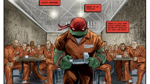 Сюжет: Первые четыре выпуска этой новой серии «Черепашек» будут сосредоточены на каждом из братьев и будут представлены разными художниками. В первом номере мы увидим Рафаэля, который не появлялся в последних шести выпусках предыдущей серии IDW, написанной Софи Кэмпбелл. Мне было любопытно узнать, чем он занимался, и превью показали, что он каким-то образом оказался в тюрьме в Калифорнии. Он далеко от Нью-Йорка, но мы не получаем никаких деталей о том, как он оказался на неправильной стороне закона...