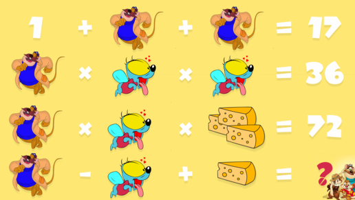 1. Начнем с чего попроще. Сможете решить эту задачу? ⬇️ ⬇️ ⬇️ 2. Здесь вам предстоит узнать, какое число спрятано за Рокфором, Вжиком и кусочками сыра. От вас потребуется не только смекалка, но и умение наблюдать ⬇️ ⬇️ ⬇️ 3...