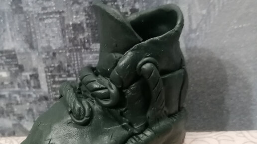 привет Мне подарили скульптурный пластилин. Фирмы "Globus" оливкового цвета. Открыв упаковку, я увидела твердый кирпич. Я еле оторвала и открутила кусок. Затем я помяла его в руках и он стал мягкий. Я решила слепить что-нибудь попроще, но не удержалась и вылепливала детали. На работу у меня ушло около часа! Вот и результат! Это ботинок на шнуровке...