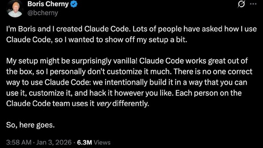 Создатель Claude Code поделился своим сетапом
