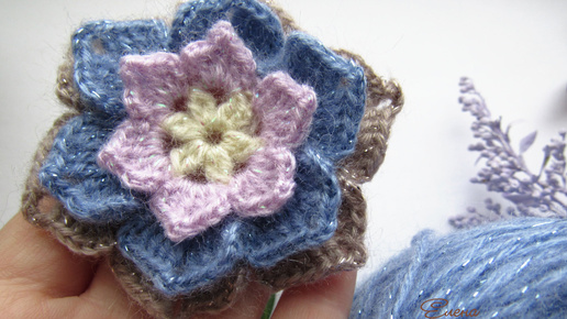 Добрый день, уважаемые подписчики и гостим моего канала! Сегодня приглашаю Вас связать цветок крючком из тёплой пряжи. Такой цветок абсолютно универсален: В конце статьи рассмотрим, как можно соединить цветы в шестиугольные мотивы. Из такого узора тоже можно придумать много приятных домашних вещей Из чего связать? Для вязания подойдёт любая пряжа и соответствующий ей крючок. Я вяжу из пряжи "Ангора Голд Симли", крючок № 1.5 Толщина нити 500 метров в 100 граммах, в составе акрил, шерсть и люрекс...