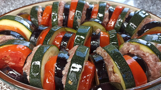 Кабачки, баклажаны и небольшой кусочек фарша. Готовлю рататуй. Ничего сложного: духовка готовит, я отдыхаю