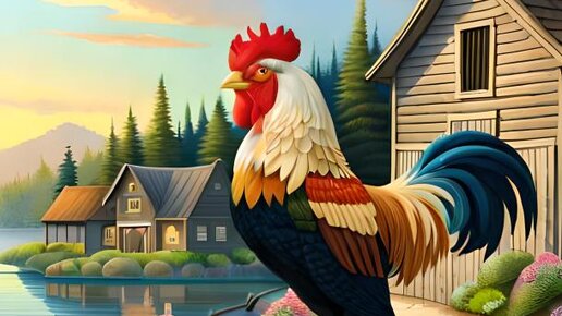 Сказка про петушка. Давным-давно в маленькой деревне среди живописных полей и зелёных холмов жил петушок по имени Петя. Петя был не просто петушком, а настоящим любимцем в своей деревни. Он был самым красивым петушком во всём курятнике. У него было красивое пёстрое оперение, и он будил деревню своим громким кукареканьем каждое утро. Когда первые лучи солнца озаряли небо, петушок Петя взлетал на забор своего курятника и возвещал приход нового дня своим мелодичным кукареканьем. Это было как музыка для ушей жителей деревни...