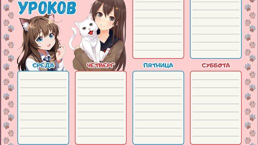 Шаблоны расписание уроков для девочек в школу с аниме и совами