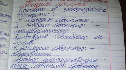 (поэма в четырёх частях). 1.Дядя Стёпа. 2.Дядя Стёпа-милиционер. 3. Дядя Стёпа и Егор. 4. Дядя Стёпа-ветеран. Герои произведения: Степан Степанов (дядя Стёпа), ребята, мальчик Вася Бородин, машинист, пожарники, доктора, немцы; сотрудник ОРУДа (отдела по регулированию уличного движения), мальчик лет пяти (потерявшийся на вокзале), его мама, ученик-всем известный озорник, две подружки-школьницы, бабка с бельём, конькобежцы, водитель "Москвича", шофёр многотонного самосвала, хулиган из магазина...