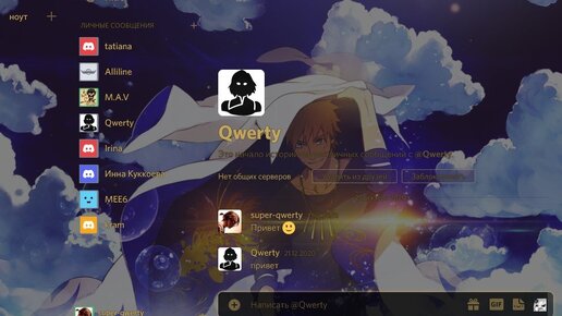 А кто это у нас прячется среди облаков ну конечно же это Наруто, надеюсь поклонники этого бессмертного аниме оценят такой вариант темы для Дискорд, а теперь то что касается исполнения, вопрос конечно спорный но мне не очень понравился цвет шрифта, попытка сделать его под золото конечно зачетная но затемненные...